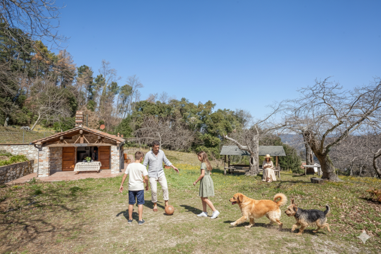 Lo splendido solarium arredato con lettini ed una piccola piscina, regala una vista mozzafiato sui castagni e la vallata circostante.